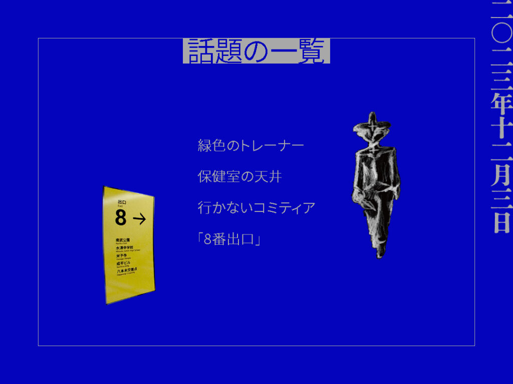 先週は……まだ2023年だったっけ。驚くよね。たかが1月1日という数字になっただけでたちまち2023という数字が古びてしまうなんておかしな話です。